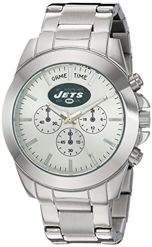 Game Time Women's 'Knock-Out' Quartz Stainless Steel Quartz Analog Watch, Color:Silver-Toned (Model: NFL-TBY-NYJ)