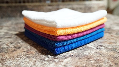 Poseidon Kitchenware Microfiber Dishcloths, Long Lasting and Super Absorbent, Great for Kitchens, Drying, Cars, Dusting, Washing, 40x40, Set of 5 (Purple)