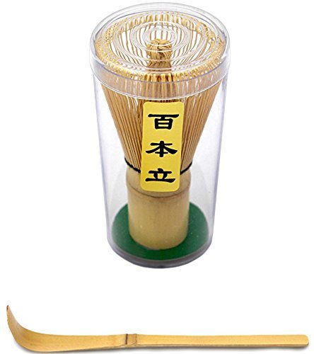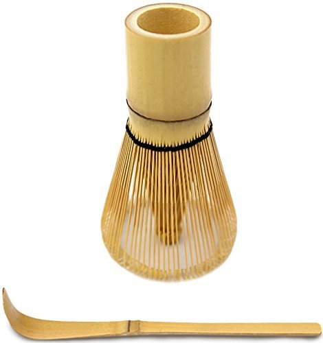 Bamboo Whisk (Chasen) and Hooked Bamboo Scoop (Chashaku) - Matcha Tea Whisk for Matcha Tea Preparation - MatchaDNA Brand - Traditional Matcha Whisk Made from Durable and Sustainable Golden Bamboo