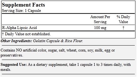 R-Alpha Lipoic Acid is the natural form of Alpha Lipoic Acid that provides antioxidant effect to neutralize cell-damaging free radicals.*Feature