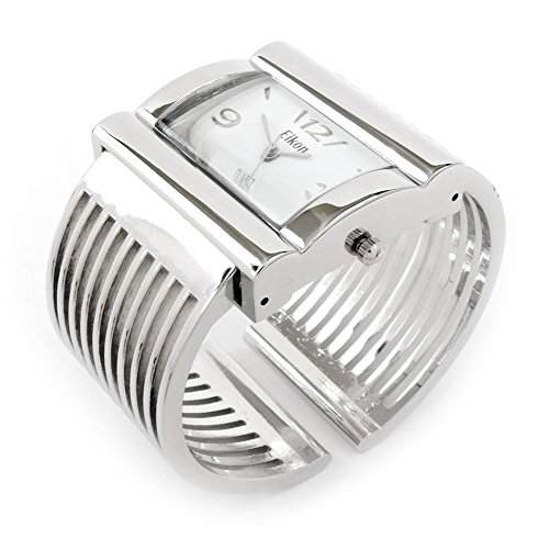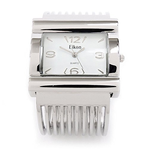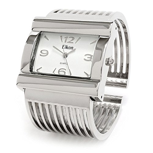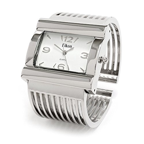 -. Title : Silver Grill Band Large Face Women's Wide Bangle Cuff Watch