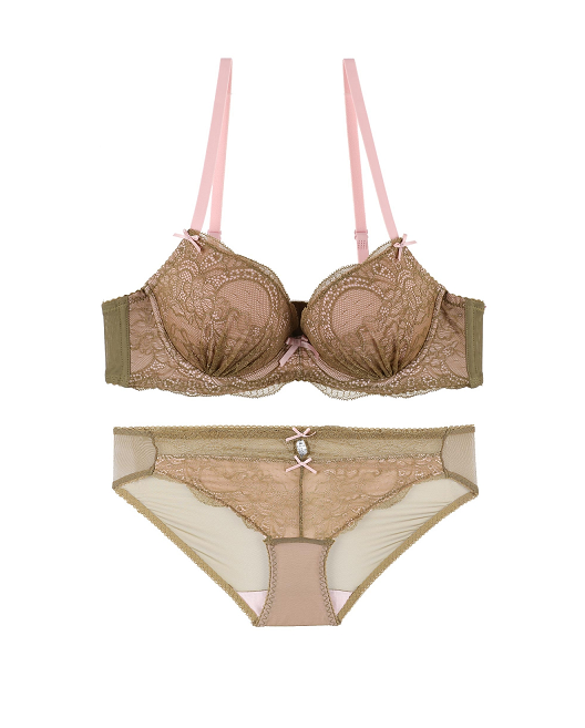 올리브그린과 베이비핑크의 UNIQUE한 컬러매치의 REAL LINGERIE제품.