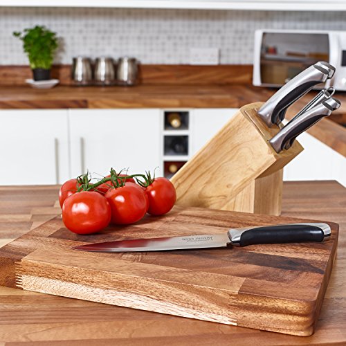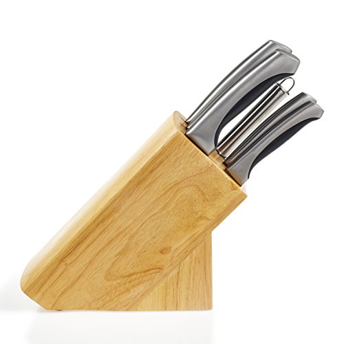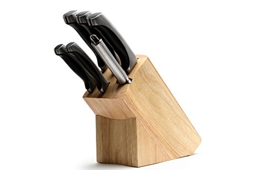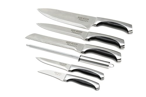 Ross Henery Professional, 6 Piece Premium, High Grade 5Cr15MoV Stainless Steel, Kitchen Knife Set in Oak Wood Block This fantastic knife set is a perfect addition to any modern and stylish kitchen, the block is made from 100% Oak wood. The knife handles are shaped and designed to offer a superior grip and the blades are high grade 5Cr15MoV stainless steel. . Within the set are the following items, all the blades are made from 5Cr15MoV Stainless Steel. The handles also feature stainless steel. The Lengths shown are for the blades only and do not include the handle 1 x Sharpener - 7.5' Long 1 x Chef's Knife - 8' Long 1 x Bread Knife - 8' Long 1 x Slicer Knife - 8' Long 1 x Utility Knife - 4.5' Long 1 x Paring knife - 3.5' long 1 x 100% Solid Oak Block