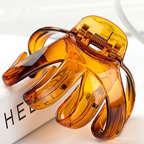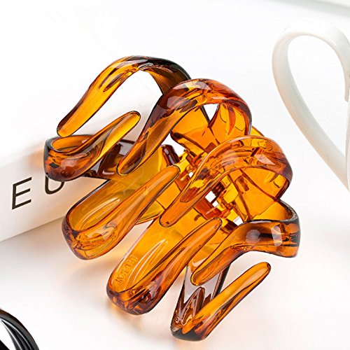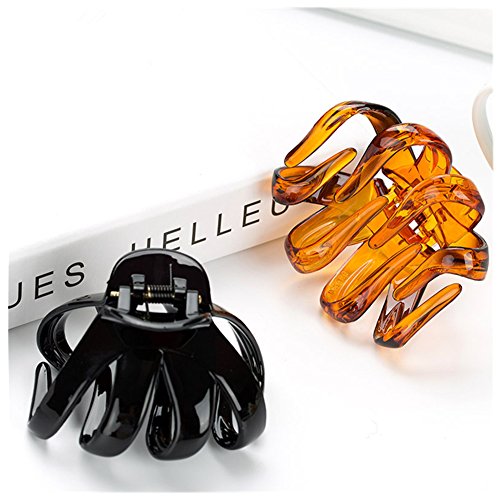 Lovef 3.15" Large Size High Quality Plastic Resin No-Slip Grip Jaw Hair Claw Clip for Women, 2 Count Coffee and Black