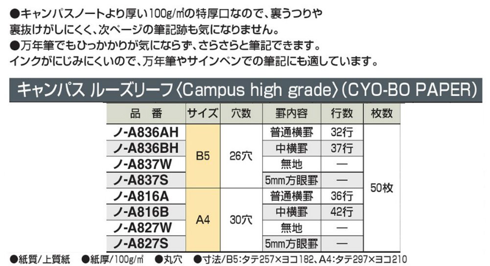 A4 grid Roh-A827S 50 sheets of loose-leaf Kokuyo Campus Campus high grade CYO-BO PAPER (japan import)
