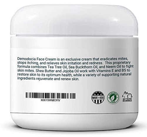 -. Binding : Misc. -. Brand : Demodocia -. EAN : 0744750575011 -. Feature : Specifically formulated cream designed to help human Demodicosis. Eradicates mites on human skin with continued use. / Helps ease facial redness and controls demodex mite symp. Relief from persistent itching of the face, burning, stinging and persistent dryness caused by the mites. Safe for use on skin. / Made in the USA / 100% Money Back Guarantee- We are fully confident you will love this product. When you order now you are backed by our no questions asked, hassle free, full money back guarantee! -. IsAdultProduct : 0 -. Label : Demodocia -. Manufacturer : Demodocia -. MPN : DM-FC -. PackageQuantity : 1 -. PartNumber : DM-FC -. ProductGroup : Beauty -. ProductTypeName : BEAUTY -. Publisher : Demodocia -. Studio : Demodocia -. Title : Demodex Face Cream 4 oz -. UPC : 744750575011