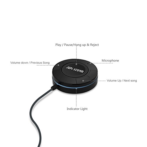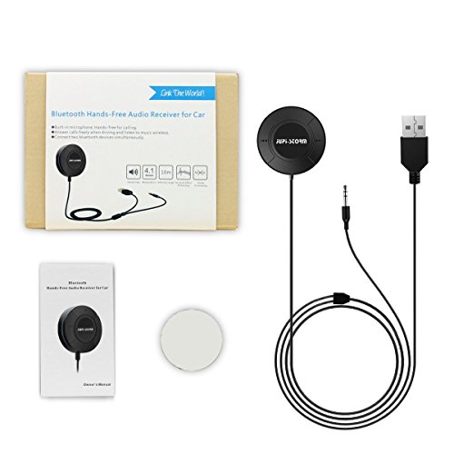 Jupi-storm Bluetooth 4.1 Hands-Free Car Kit,Wireless Bluetooth Audio Music Receiver with 3.5mm Aux Jack,USB Charging,3M Adhesive Base,Handsfree Calling for IPhone, Samsung ,HTC One,Andriod Smartphone
