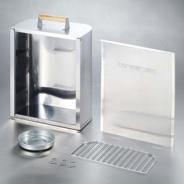 | 素材・材質 | 本体・ふた:ステンレス鋼 網・フック:鉄(クロムめっき) チップ容器:亜鉛めっき鋼板 ハンドル:天然木 |