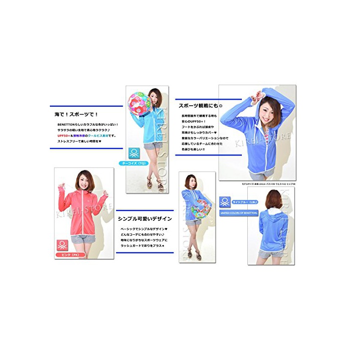 Benetton BENETTON (베네통) 225817-225818-245817 러쉬 가이드 레이디스 UPF50+ 러쉬 파커 긴 소매 ZIP 업 하이네《구》 수영복 썬탠 방지 파커 S M L LL