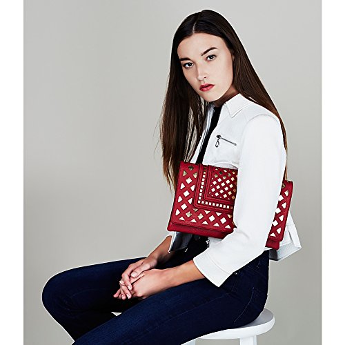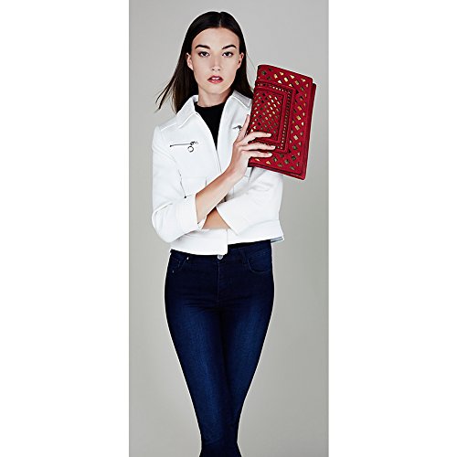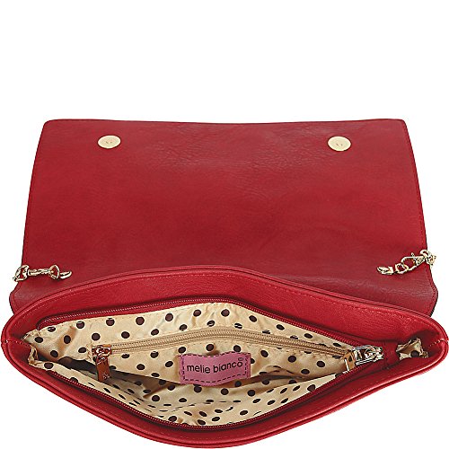 -. Brand : Melie Bianco -. Department : womens -. Feature : Flap over closure / Additional long chain strap with a drop length of 7 inches / Zipper closure inside / Lined interior features two slip pockets and one zipper pocket / Lined with signature satin polka dot lining -. Label : Melie Bianco -. Manufacturer : Melie Bianco -. PackageQuantity : 1 -. ProductGroup : Shoes -. ProductTypeName : HANDBAG -. Publisher : Melie Bianco -. Studio : Melie Bianco -. Title : Melie Bianco London Laser Clutch Flap over closure Additional long chain strap with a drop length of 7 inches Zipper closure inside Lined interior features two slip pockets and one zipper pocket Lined with signature satin polka dot lining