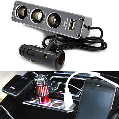 - Feature : 4 Interior lights; each light has 3 LEDs / Easy to install; lights can rotate 360 degrees / Convert and increase your car cigarette lighter from 1 to 3 sockets and a USB power port / USB charger output to 5V / 500mA, suitable for cell phone, GPS, iPod, and PDA / Simply plug into cars cigarette lighter socket. Run multiple accessories at one time