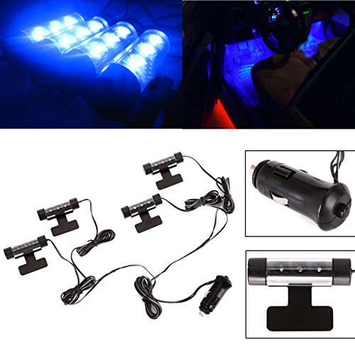 - Title : HDE Set of 4 - 3 Blue LED Car Interior Dash Lights w 12 volt 3 Socket Car Lighter Adapter w USB