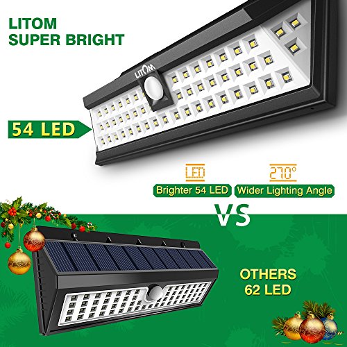 With 3LEDs setup on both sides of the solar lights which create a wider range of luminosity. The maximum lighting angle can reach 270 degrees. Compared to other similar solar lights in the market, this solar motion light just shines brighter due to the 54 powerful LED lights, It's bright enough to provide security for your home or business accommodation.