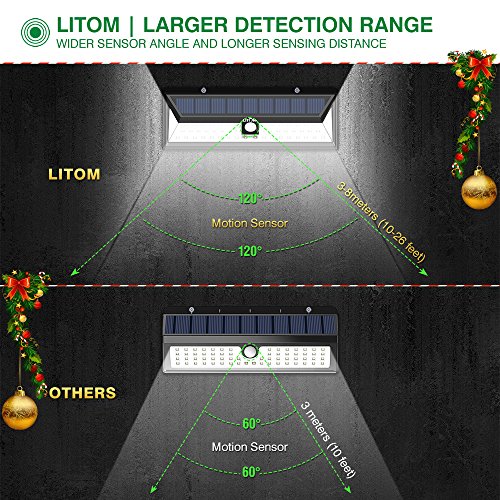 Motion Sensor mode. litom 54led solar light will charge in the day, auto turn on bright light when in the darkness or at night when motion is detected and last about 17-20 seconds.