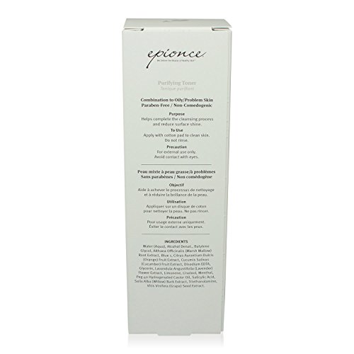 Epionce Purifying Toner removes excess shine, dirt and debris to reduce breakouts. The texture of the skin is refined and pores are cleared with Willow bark leaving a bright complexion. Grapeseed extract shields the skin from environmental damage while Lavender calms inflammation. Menthol and cucumber extract leave skin feeling refreshed and cool. Epionce has proven to be a highly effective cosmeceutical, non- prescription dermatological product line with over 20 years of knowledge and experience. With a solid scientific background Epionce products feature patient pending, unique products formulations. Your skin's natural defenses are strengthened and damaged areas are repaired with their powerful ingredients improving skin as a whole. They specialize in treating conditions such as dermatitis, acne, eczema and psoriasis and reversing the signs of aging through their result-driven product line.