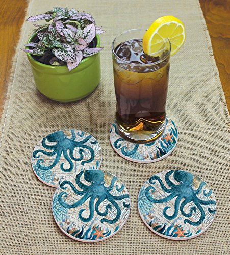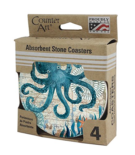 -. Binding : Kitchen -. Brand : CounterArt -. Color : Multicolor -. EAN : 0885546416740 -. Feature : Set of 4 absorbent coasters with attractive design combines artistic form with high function / Coasters are natural stoneware with decorative transfer print / Each coaster has a durable cork backing to protect countertops and furniture; measure 4 inches across / To remove stains, soak coaster in 1 part household bleach and 3 parts water until stain lifts, then rinse and air dry / Holders available; look for counterpart coaster holds ( sold separately) -. Label : Counter Art -. Manufacturer : Counter Art -. Model : 47713 -. MPN : 47713 -. PackageQuantity : 1 -. PartNumber : 47713 -. ProductGroup : Kitchen -. ProductTypeName : KITCHEN -. Publisher : Counter Art -. Studio : Counter Art -. Title : CounterArt Monterey Bay Octopus Absorbent Coasters, Set of 4 -. UPC : 073143477138
