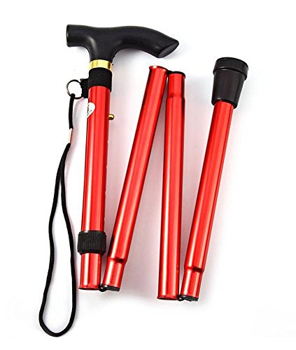 -. Title : 【ASPALAND】 超 軽量 折りたたみ式 杖 赤 ステッキ 5段階 長さ 調整 ロング ストラップ