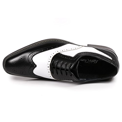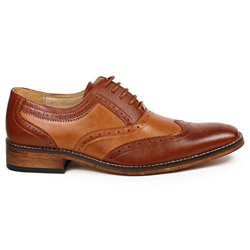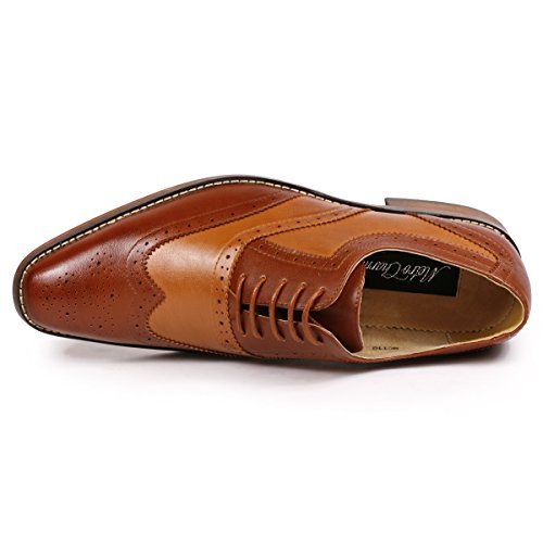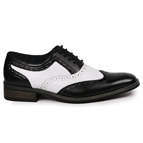 Product Description Classic 2 Tone colors " Black / White, Brown / Tan , Black / Red , Brown / Tan " , elegant look dress shoes featuring , faux leather upper, leather lining , classic perforated wingtip design cushioned footbed for comfort, and synthetic outsole. 0