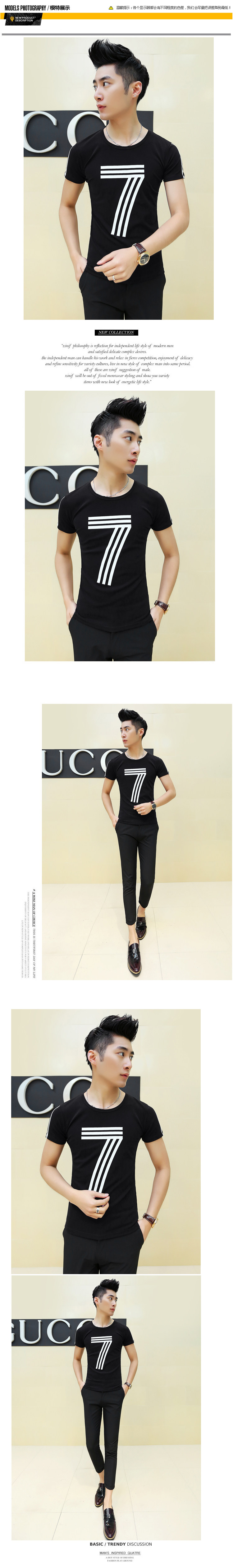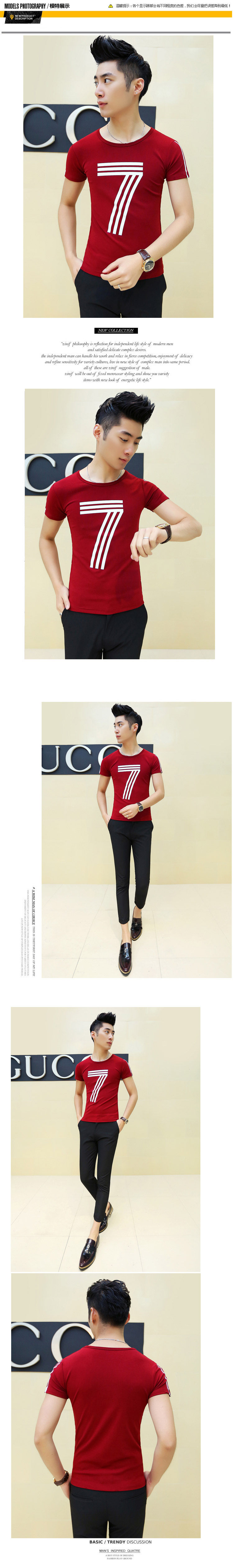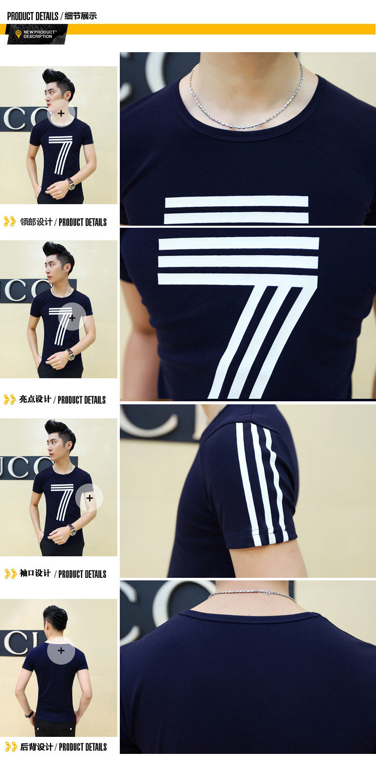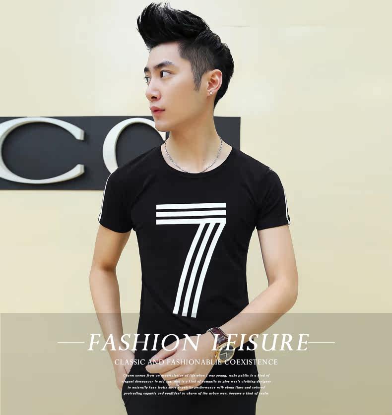 卓野夏季韩版潮流休闲体恤男装圆领半袖打底衫男士修身型短袖t恤