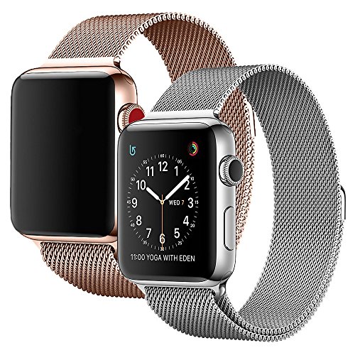 -. Title : Apple Watch Band 38mm 42mm Stainless Steel Milanese Mesh Loop Magnetic Clasp Bracelet Strap Metal Replacement iWatch Band for Apple Watch Series 3 2 1 Women, 2 Pack