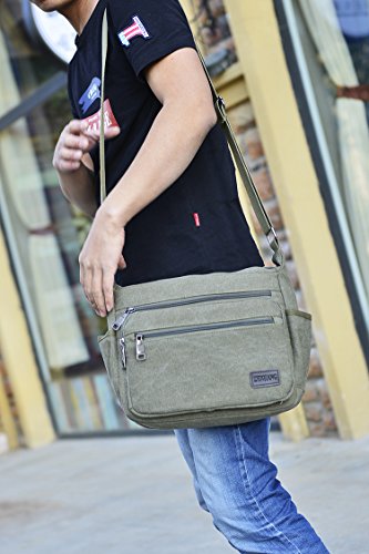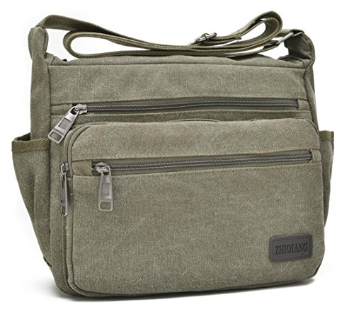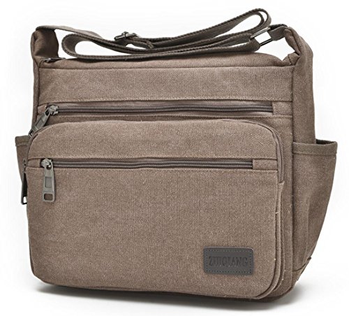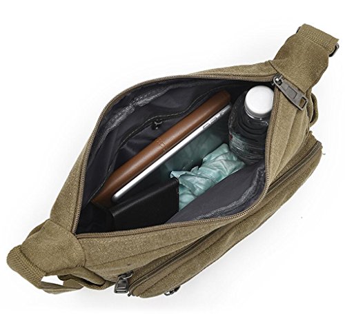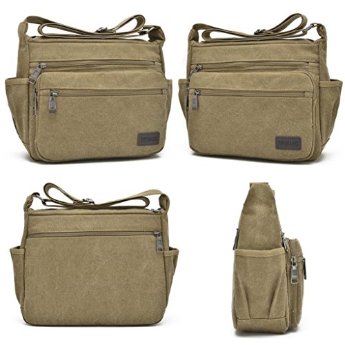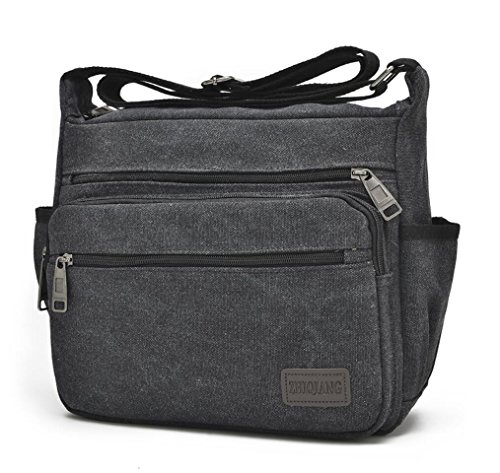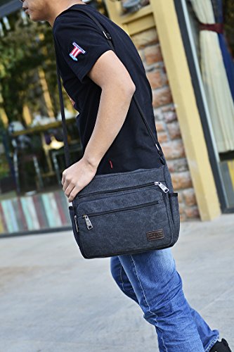 -. Feature : Dimension: The Lightweight Messenger bag`s size is 12.6"(L)*4"(W)* 9"(H) inch, Weight: 0.5kg/1.1LB. Perfect size for traveling, meetings, school, etc. Fits for 11.5" laptop, iPad, Kindle, iPad mini, mobile phone, wallet, cosmetics, bottles, umbrella, keys, pens, pencils, money, ID cards, etc. Great messenger bag for men and women / High Quality Material: The shoulder bag is made of high density canvas fabric, Polyester lining. Durable and fashionable, well made, simple yet stylish / Structure: Internal - 1* main pocket, 1* inner zipper pockets. External - 3* front zipper pocket, 2* side open pocket for bottle and umbrella. The multi pockets crossbody bag is roomy and convenient to carry your stuffs. It¡¯s a practical daily bag for your everyday use. / Occasion: The canvas bag can be used as crossbody bag / messenger bag, shoulder bag, satchel. Nice choice for Casual, Traveling, School, Shopping, working, Gym, Hiking, Daily use, dating, college, business, sports, party / Strap:Comfortable and Adjustable Strap: Adjust to enough length that it can be carried over the shoulder or cross body. The strap is shoulder strap is wide and padded