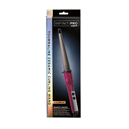 Fast and easy, with no kinks! Create beautiful curls and waves with the Infiniti Pro by Conair Tourmaline Ceramic Curling Wand; 1-inch to 1/2-inch