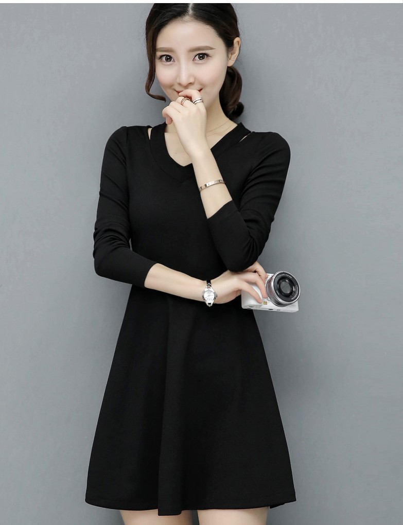 ネック周りが一部オープンになったショート丈のシンプルワンピース♪