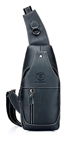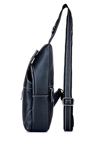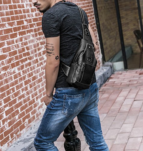-. Title : Men's Sling Bag Genuine Leather Chest Shoulder Backpack Cross Body Purse Water Resistant Anti Theft For Travel Hiking School