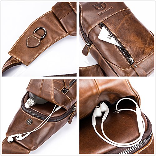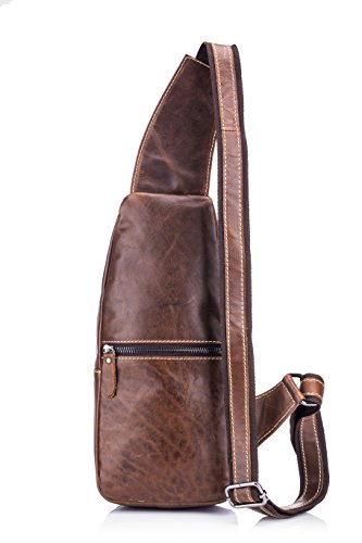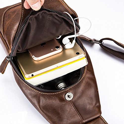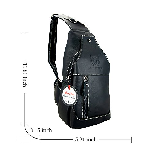 -. Feature : [MATERIAL:100% GENUINE COWHIDE LEATHER]: The messenger sling bag is made of high quality full-grain leather which is soft ,durable and water resistant. Sleek and elegant mercerized fabric lining protect the stuffs well. / [DIMENSION:5.9"*11.8"*3.2"(L*H*W), 18oz, STRAP LENGTH: 51"]: This chest bag is a mini backpack, but it is a great size to take to a day trip or shopping. The bag can be either carried with the D ring or adjustable shoulder strap. / [MULTIPLE STORAGE PURPOSE SLING BAG]: Large main compartment with inner open cellphone pouch is perfect for iPad Mini, Kindle. Magnet buckle pouch is perfect for sunglasses,umbrellas. Front & Back zippered pockets are great for various of small items. / [UNBALANCE BACKPACK WEARING STYLES]: This purse backpack is a 3 way bag, you could wear it in anyway you like as chest bag/ shoulder bag / crossbody bag. It`s safe , stylish, handy, lightweight and comfortable. / [STYLISH & VERSATILE DESIGN]: WeeDee Bags are high-performance, multipurpose bags that fill multiple roles. It's perfect for walking/traveling/biking/hiking/museums/theme parks and everyday using. Also it's a great gift for everyone.