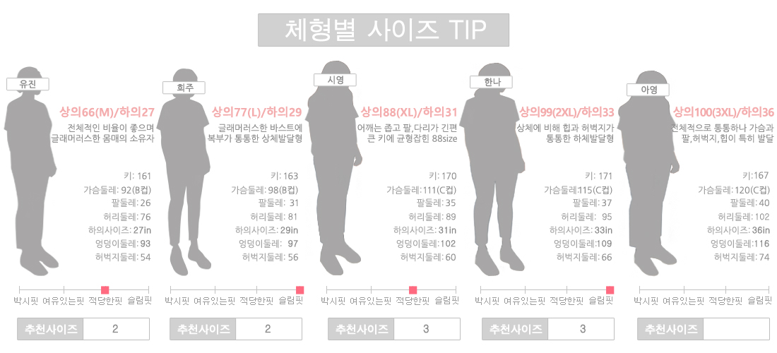 88에서 99까지 분들께는 3사이즈를 추천해 드려요.