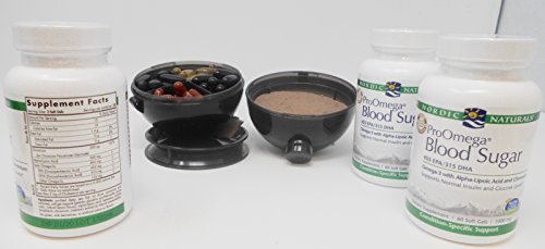 We all need glucose (or sugar) in our blood' but having the right balance is important. Without it' your body may produce more urine than normal' potentially becoming dehydrated because urination expels important fluids your body needs. An imbalance may also lead to dizziness or feeling lightheaded. ProOmega Blood Sugar by Nordic Naturals may help support cardiovascular health. Each soft gel capsule provides essential omega-3 fatty acids' as well as other important nutrients. EPA and DHA-essential fatty acids that are found in cold-water fish. which may provide numerous mental and physical benefits' such as supporting a healthy brain and working to relieve inflammation. Each serving provides 455 mg of EPA and 315 of DHA. Chromium-an essential trace element that may support the heart. Alpha-liopic acid-a fatty acid that may support the conversion of the carbohydrates you eat into energy. One bottle of Nordic Naturals' ProOmega Blood Sugar should last for about one month if you take the recommended dosage of two soft gels per day with food. Nordic Naturals strives to provide high-quality fish oils sourced from Norwegian Arctic waters' along with other supplements essential to life. Viita Ball Premium Supplement Storage Container and Shake Funnel- Great for storing your pills and mixable powders. The funnel construction lets you avoid the mess while dispensing your protein shakes into a water-bottle.Colors will vary.Feature