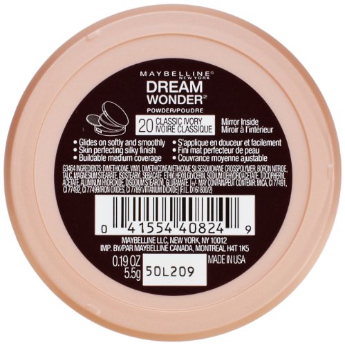 -. Binding : Health and Beauty -. Brand : Maybeline New York -. Color : Sun Beige -. Label : Maybelline New York -. Manufacturer : Maybelline New York -. ProductGroup : Beauty -. ProductTypeName : BEAUTY -. Publisher : Maybelline New York -. Studio : Maybelline New York -. Title : Maybelline New York Dream Wonder Powder, 0.19 Ounce