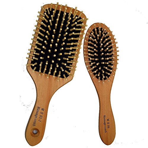 Xuanli 2pcs Hair Brush - Detangling Scalp Massage Hair Comb - Organic Wooden Bristle Cushion Hairbrush(M033)