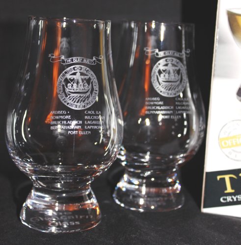 Studio : GLENCAIRN Publisher : GLENCAIRN Product Description These two NEW, MINT 4-1/2" tall GLENCAIRN tasting glasses in the tulip shape design is QUALITY ETCHED with THE ISLAY MALTS AND ISLAY SEAL / CREST. Located on the Isle of Islay, the nine Islay malts are featured on this glass: ARDBEG, LAGAVULIN, LAPHROAIG, PORT ELLEN, BOWMORE, KILCHOMAN, BRUICHLADDICH, BUNNAHABHAIN, AND CAOL ILA. In the style of the tulip, this GLENCAIRN blenders' malt glass has the qualities needed for capturing aromas. The design allows for more concentrated nosing. These nosing glasses also come attractively gift boxed. Also good for nosing and tasting your favorite American, Canadian and / or Irish whiskey. 0