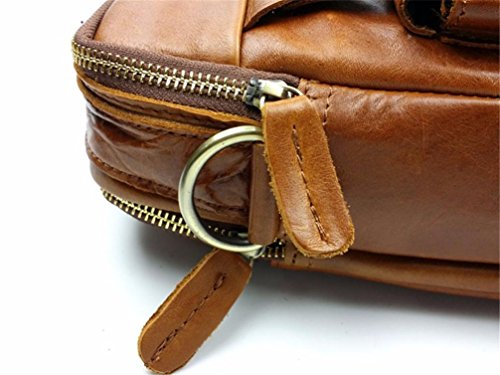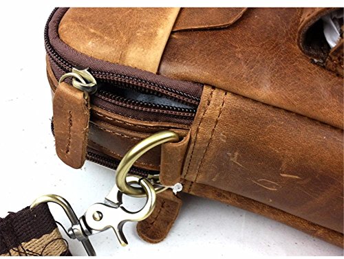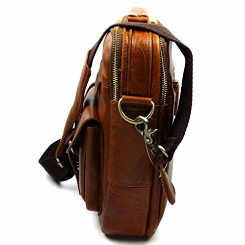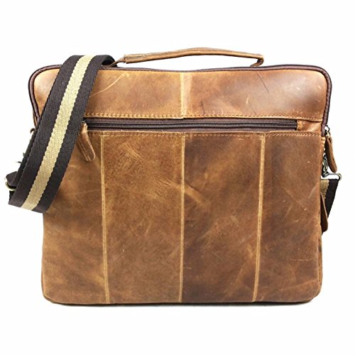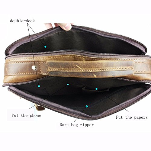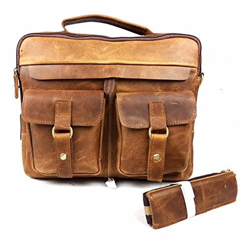 -. Feature : Top Layer Crazy-Horse Genuine Cow Leather, 100% Brand New & High Quality. / Full leather and bronze tone hardware top handle; Adjustable, padded and detachable leather & braid shoulder strap / Interior with 2 compartment pocket which can store your 13.3" table pc , wall zipper pocket, 2 additional pockets for cellphone and wallet, 1 Side zipper bag / Front flat with twin buckles decoration and push button closure is great for quick-access items, inside with zipper closure, maximum security for valuables is guaranteed / Back exterior with zipper pocket,dimensions (L*W): about 33cm x 28 cm