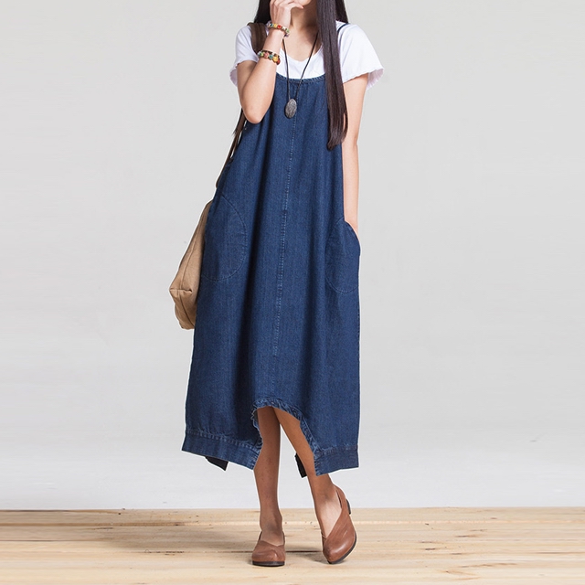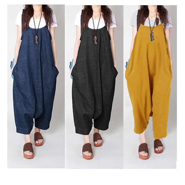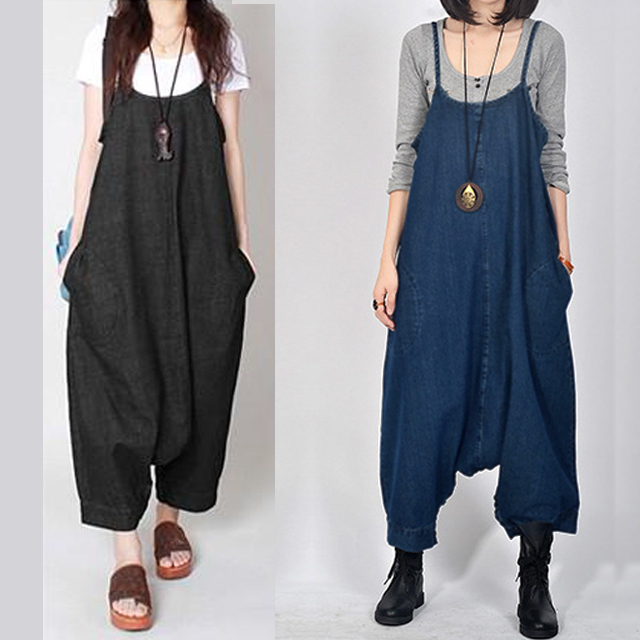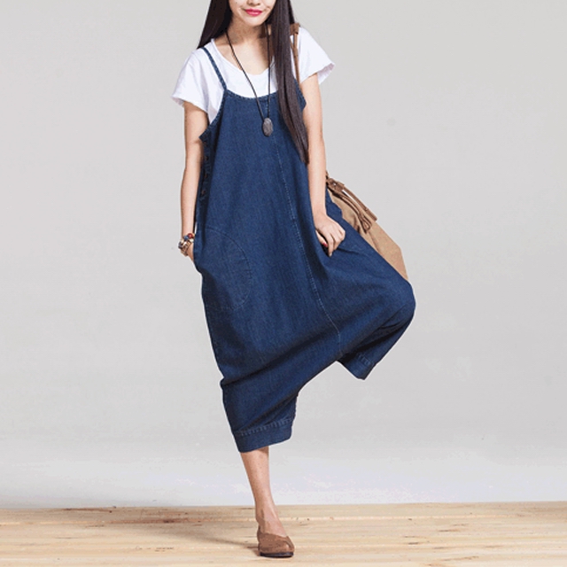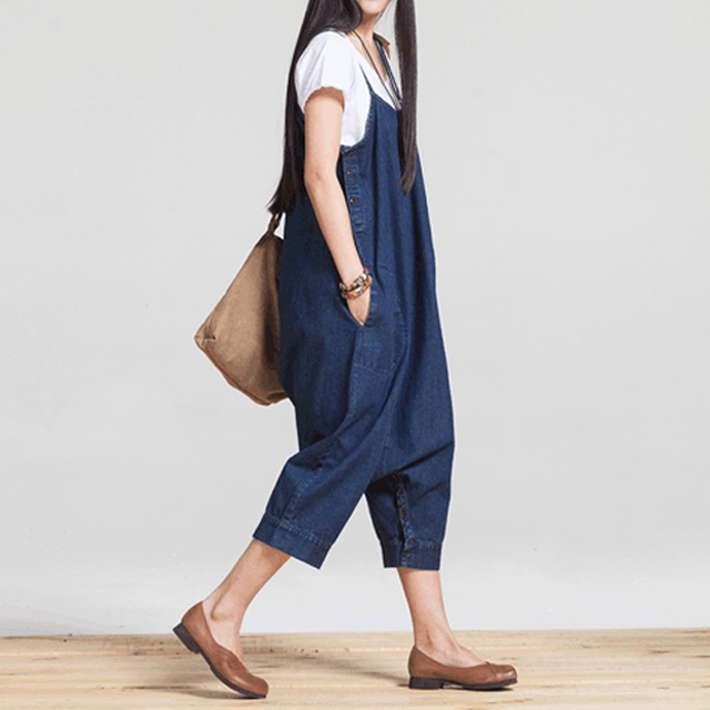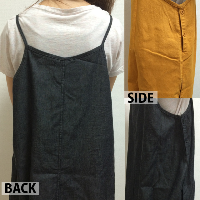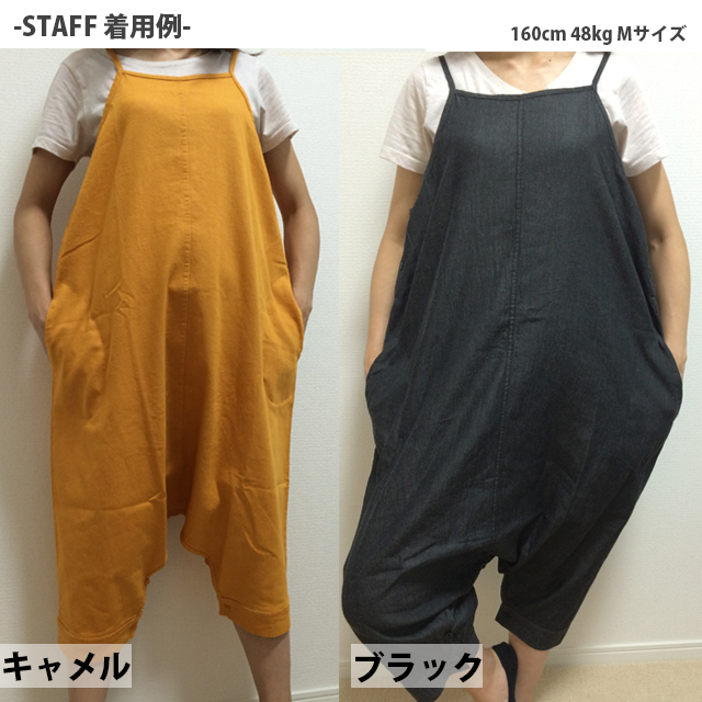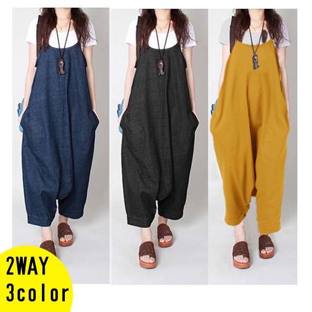 足元のボタンでワンピにもサルエルにもなるデニム素材オールインワン!ゆるっとしたシルエットで楽ちん体型カバー!