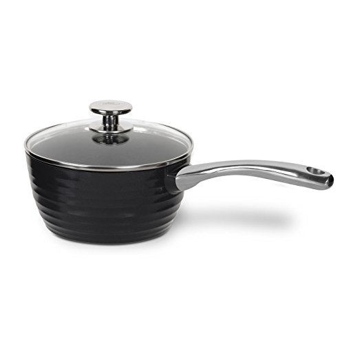 The Sophie Conran Cookware range has been introduced to compliment the elegant and organic shapes that are reflected in the Sophie Conran Dinnerware Collection. This range of cookware, which is available in black or white, is dishwasher safe. In addition it comes with a cast iron body for quick and even heating combined with a heavy gauge base which eliminates hot spots. Light and strong with integral handles and tempered glass lids, this cookware is oven safe to 390 degrees Fahrenheit, making it perfectly suited for oven to table use. The additional stainless steel disc makes these pieces suitable for use with induction cooktops as well as gas and electric. An innovative ceramic non-stick coating is applied and is free from plastics, PTFE, PFOA and will not emit harmful fumes and toxins if accidently overheated. All pieces have a hard and scratch resistant surface. These pieces are the perfect complement to any dinnerware collection. The Black Saucepan with Glass Lid is 7.0" in diameter and has a 2 quart capacity.Feature