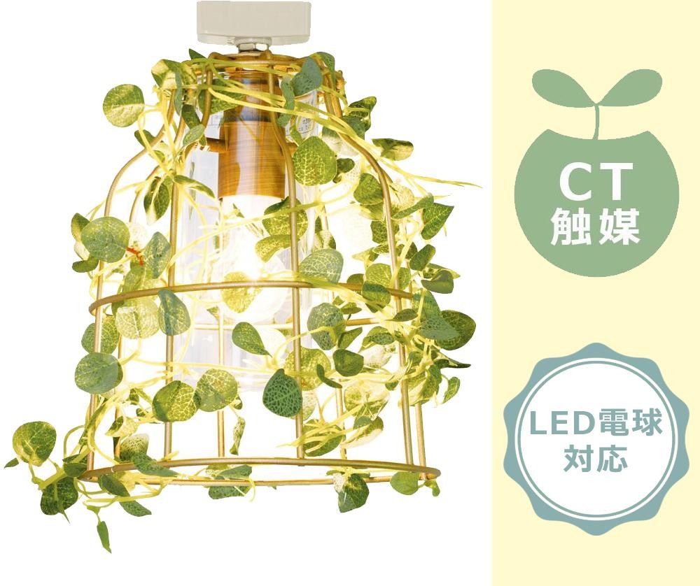 | アンティーク風のアイアンシェードにアーティフィシャルグリーンが巻かれたナチュラルな雰囲気のシーリングライトです★アーティフィシャルグリーンには空気を綺麗にするCT触媒加工が施されています。 |