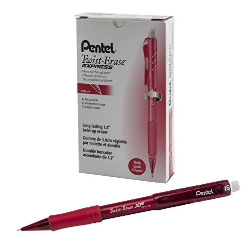 Pentel Twist-Erase EXPRESS Mechanical Pencil 0.9mm, Red Barrel , Box of 12 (QE419B)