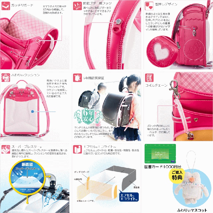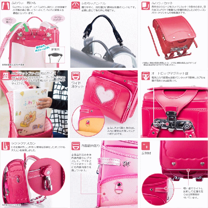 【후와리 콤팩트 클래식 란도셀】【경량990g】디자인과 기능이 충실 A4플랫 파일 대응 내용은 그대로,외형은 콤팩트 클라리노 터프 록남아용