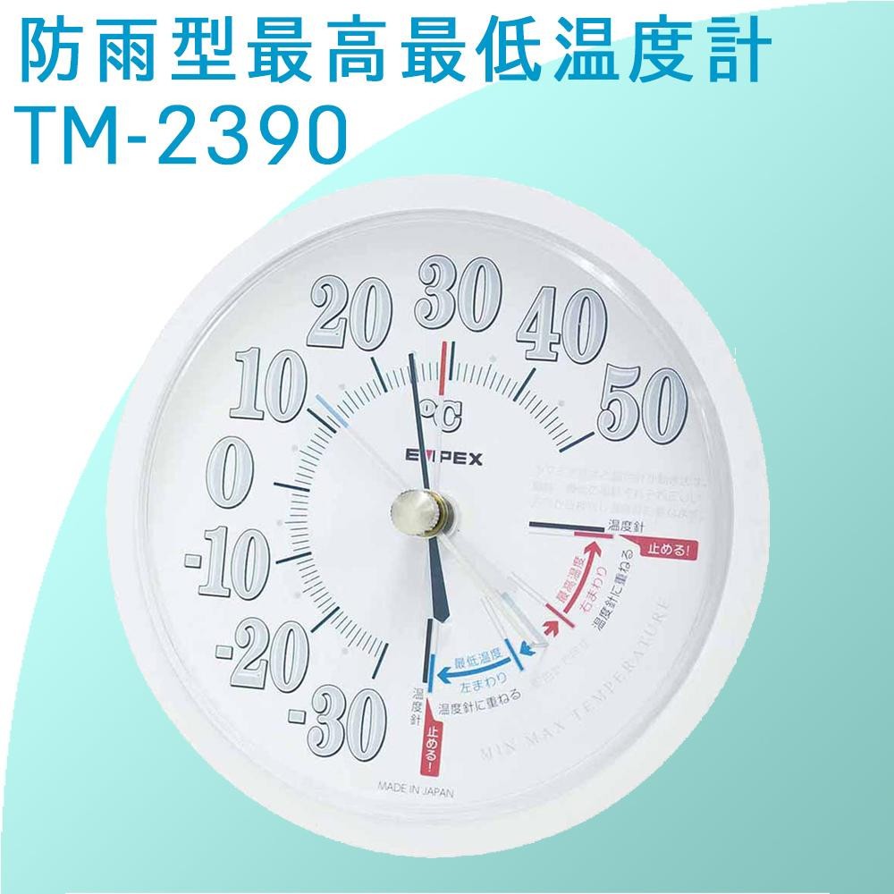 屋外でもご使用できる防雨型。赤い針先は最高温度、青い針先は最低温度を示します。 製造国:日本 素材・材質:PS樹脂 商品サイズ:直径約120×37mm 仕様:掛け型 付属品:取扱説明書、保証書(保証期間:1年)、フック、ネジ ※サプライヤー直送品 ご注文後5~6営業日後の出荷となります【商品名】EMPEX(エンペックス気象計) 防雨型最高最低温度計 TM-2390
