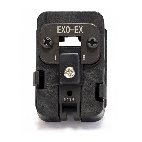 The patented EXO-EX Die is used with the EXO Crimp Frame to terminate ezEX-RJ45 connectors (typically used in Cat6 and Cat6A). The EXO-EX Die is interchangeable and reversible when used with EXO Crimp Frame. Designed for the new ezEX-RJ45 connectors (ezEX44 and ezEX48). The ezEX-RJ45 connectors are an RJ45 pass through connector, developed for larger cables and conductors. Integrated Hi-Lo stagger for improved performance and one piece design pass through system.Feature