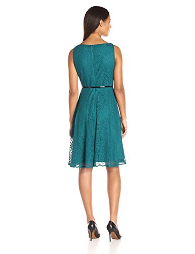 Kasper Women's Belted Pleat Neck Geo Lace Dress