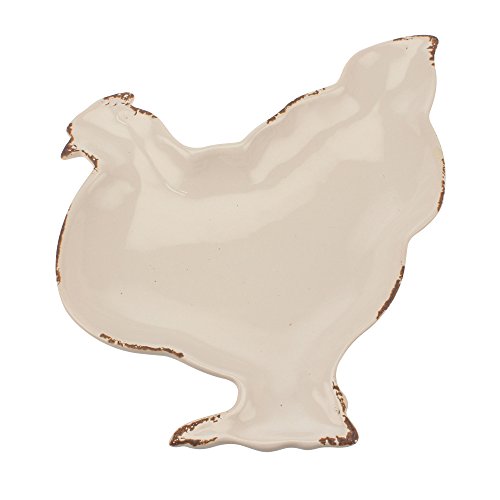 Stonebriar SB-6123A Farmhouse Worn White Ceramic Hen Plate