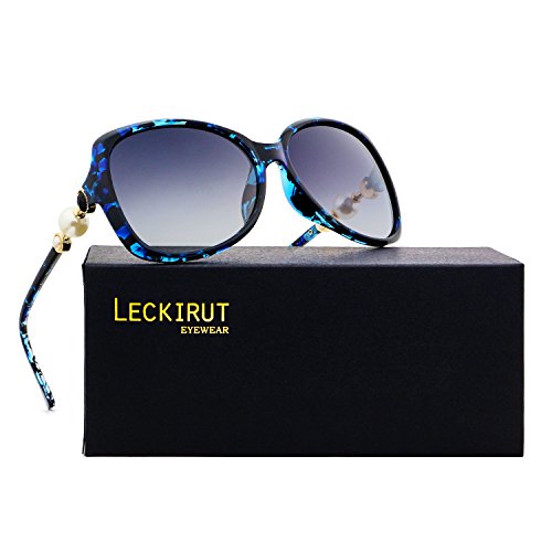 Leckirut Women Oversized Polarized Sunglasses Pearl Style Frame UV400 Protection Eyewear for Driving Outdoor Golf
