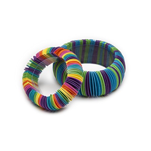These fun-to-make bracelets run circles around other bracelets! we give you enough pre-cut paper circles to create two stylish bracelets that are Super easy to wear, Thanks to the stretchy elastic cord. PAPER jewelry rules!