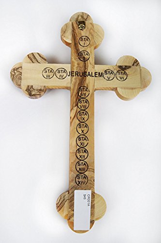 Cross Crucifix Orthodox 14 Station 4 Lens Essences Olive Wood by Bethlehem Gifts TM (11")
