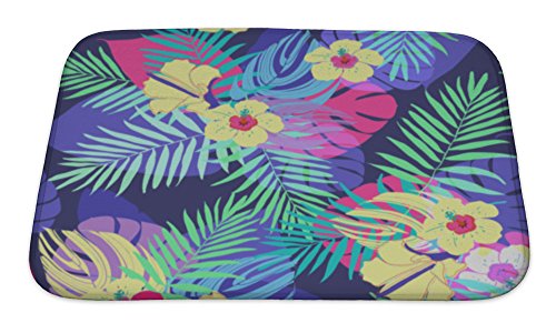 Gear New No Slip Microfiber Memory Foam Tropical Exotic Flowers & Leaves Bath Rug Mat, 24" X 17"