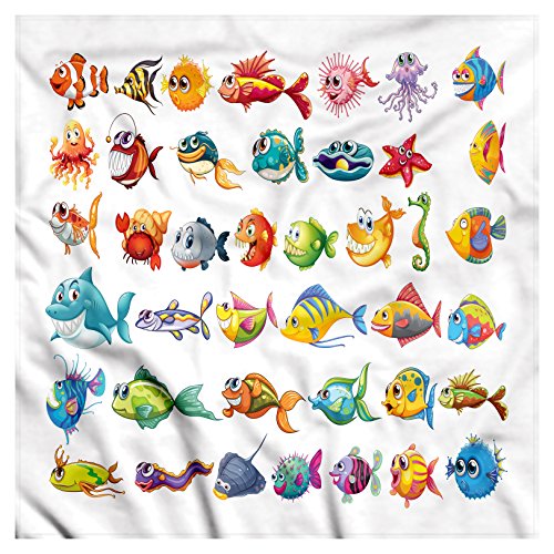 (Ambesonne)/Accessories/Cold Weather Accessories/DIRECT FROM USA/Fish Bandana by Ambesonne, Collection of Sea Creatures Cartoon Style Vivid Colors Happy Fish Li...