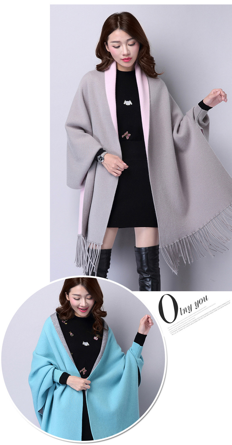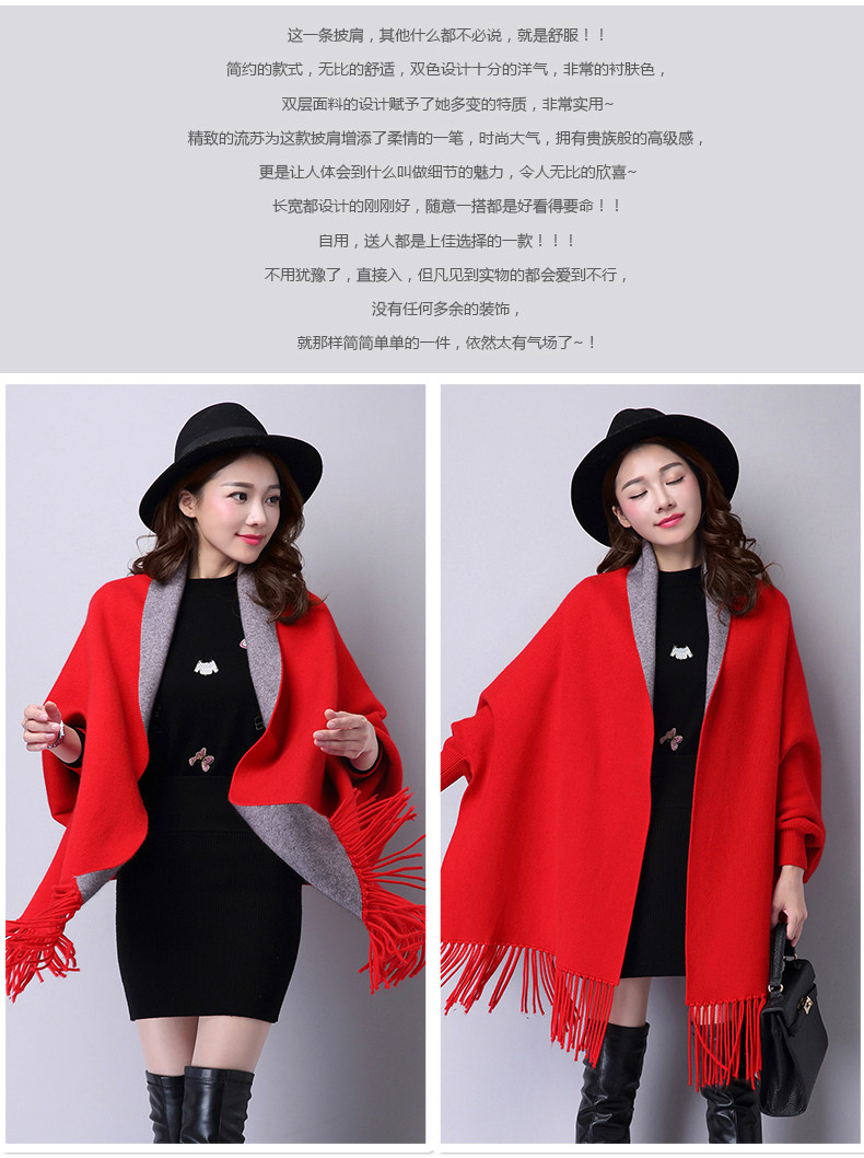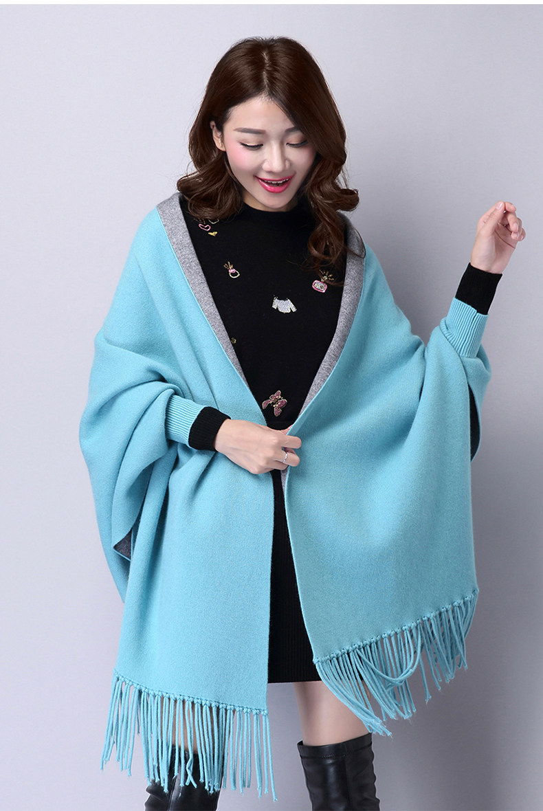 Cape shawl coat female autumn and winter cloak loose large size bat sleeveless knit shirt ladies